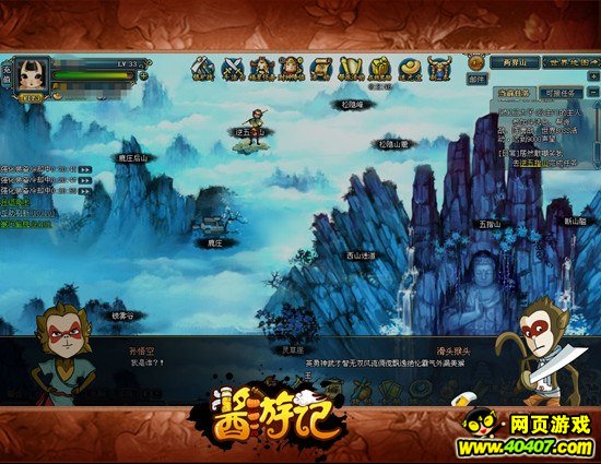 91wan《酱游记》是一款以中国古典名著西游记为背景的策略类网页游戏, 采用轻松幽默的风格,依据名著的剧情设置,玩家可以在游戏中体验孙悟空的诞生、大闹天宫,至经历九九八十一难的西游取经的历程,尽情解读另一番风味的名著。游戏还拥有丰富的路途妖怪招募,诙谐的动作和对话,真实的西游装备以及打败妖怪所需丰富多样的智谋和战略,定能带为您淋漓尽致的西游体验。