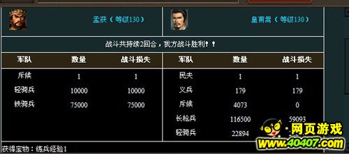 第三次带骑兵10万+1万铁骑。这个就有点难度,但还是可以打。如果你的将是300左右勇武,你设置2到3万轻骑前进,目标设置铁骑。秒掉他铁骑,枪兵再跟上打轻骑。如果你没有轻骑或数量太少,秒不掉他一万铁骑。那你可以设置2到3万枪兵出战,虽然你打不赢,但你可以以少换多,杀他一万铁骑,或2 3万轻骑也是赚。