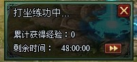 进入打坐状态。该状态下玩家可以在每60秒获得一次经验成长。在没有体力值的情况下也可以修炼追上其他玩家。