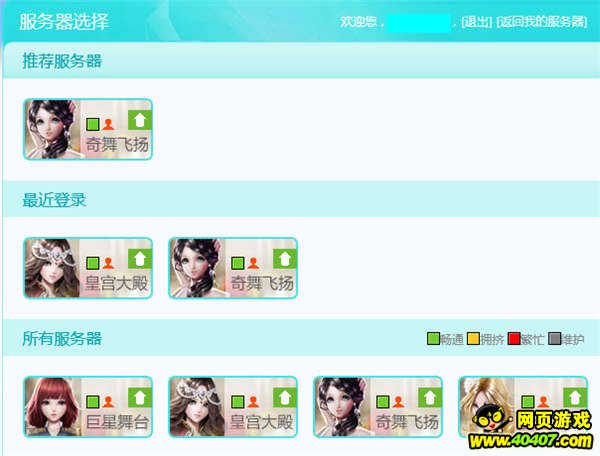 输入账号与密码之后,即可登陆游戏并跳转到大区选择界面: